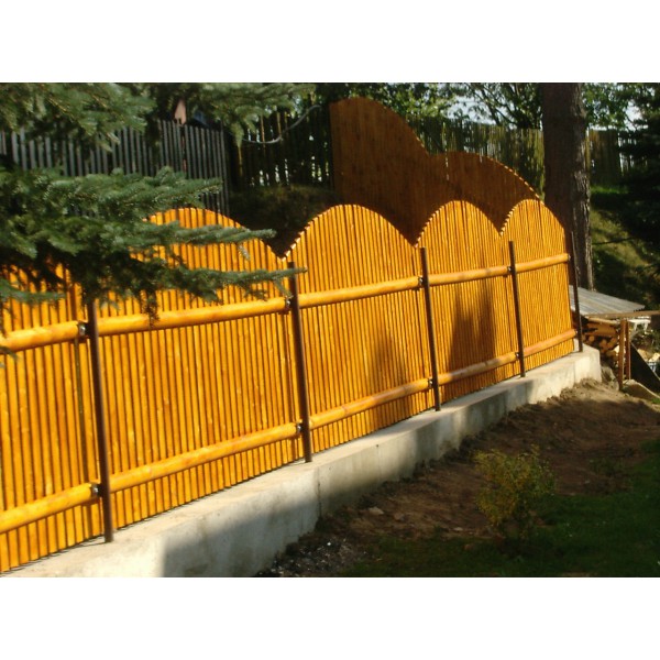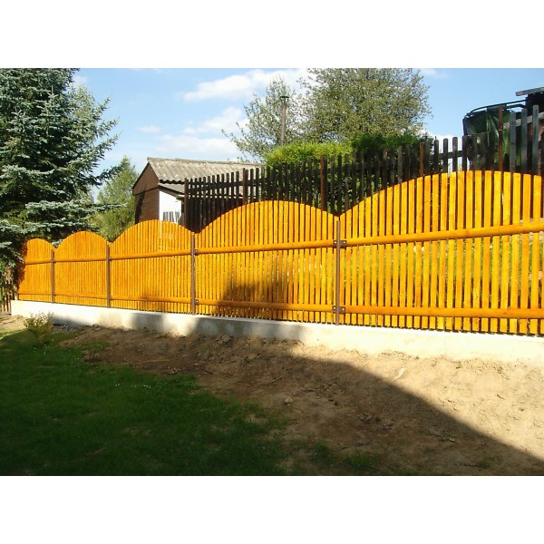 Obloukový dřevěný plaňkový plot.
