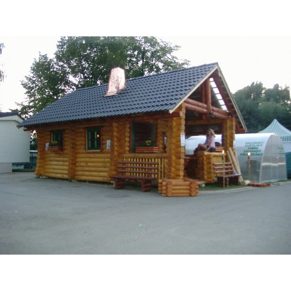 Srubová chata z masivu pr.200mm o půdorysu 6x4 m s půdním prostorem.
